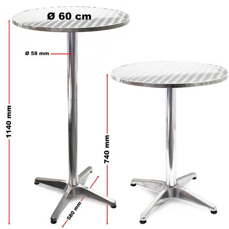 | Dimensions | Hauteur: 70-110 cm Dessus de table: Ø 60 cm Tube support : Ø 63 mm Pieds d’appui : 580 mm |
