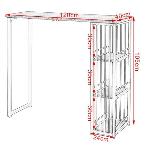 – Table de cuisine avec 3 tablettes pour bouteilles de vin. le verre à vin ou d’autres ustensiles de cuisine.