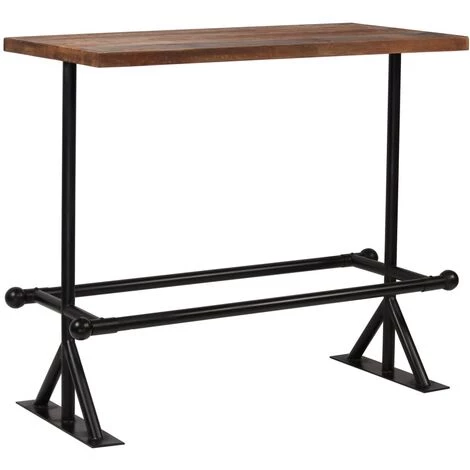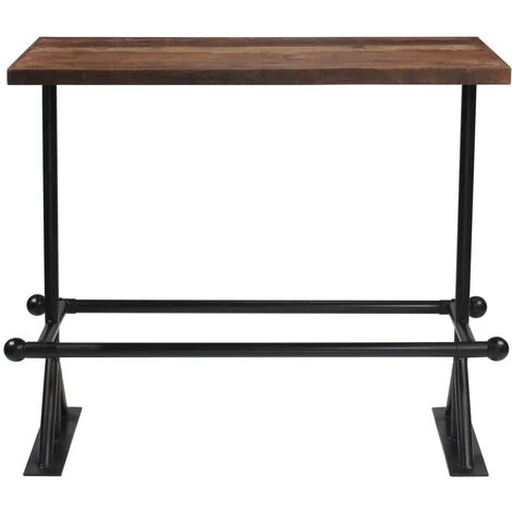 Ce mobilier de bar à l’allure rétro suinte le style industriel et s’intègre parfaitement à votre décor. La table et les chaises de bar sont faites de bois massif de récupération provenant de solives, de planchers et de poutres de soutien de vieux batiments en cours de démolition, et peuvent être composées de différents types de bois comme pin, teck, hêtre, chêne, cèdre, bois de manguier, acacia, etc. Cela signifie que le bois de récupération conserve les caractéristiques de ces différents types de bois. Le bois récupéré est déjà vieilli, patiné et séché, donc il ne rétrécit pas et ne se plie pas. Les belles fibres du bois rendent chaque meuble unique et légèrement différent des autres. Les signes d’usure et la structure du grain visible donnent également à l’ensemble sa propre histoire et un look unique. Chaque étape du processus est réalisée avec le plus grand soin, que ce soit le polissage, la peinture ou le laquage. La structure en acier assure la robustesse et la stabilité de l’ensemble, mais contribue également à son style industriel. Les repose-pieds renforcent le confort d’assise. L’assemblage est facile. La livraison comprend 1 table de bar et 4 chaises de bar. Remarque importante : Les couleurs varient d’une pièce à l’autre, ce qui rend chacun de nos articles unique ; la livraison est aléatoire.
